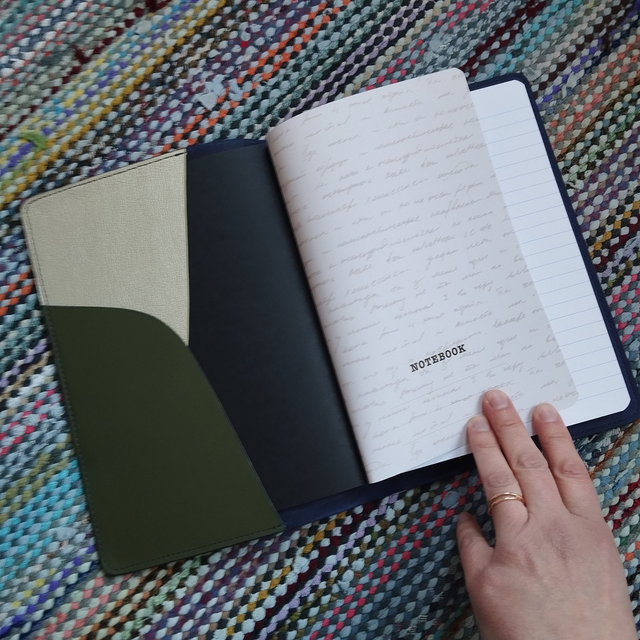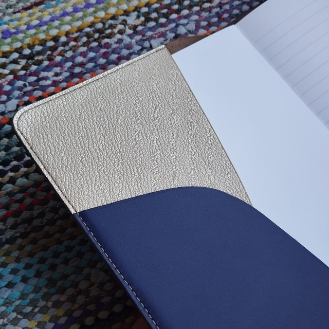 BERLIN est un protège carnet adapté aux carnets A5 dont le rabat avant (disponible en 2 tailles) forme un B mais aussi une pochette pour glisser des documents. Quant au rabat arrière, il couvre toute la couverture arrière du carnet pour ne pas gêner lors de l'écriture. Les rabats sont des couleurs contrastées avec l'extérieur.