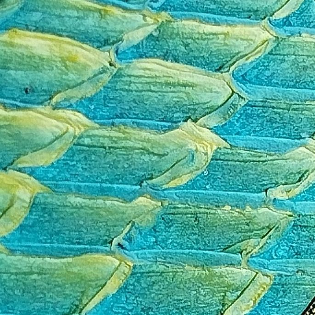 Chaque boucle est absolument unique car l'insertion des écailles varie sur la peau d'un même poisson. Il faut donc être prêt à recevoir des boucles du même coloris, mais dont le dessin formé par les écailles peut différer. Si vous voulez choisir le dessin, envisagez une remise en main propre !