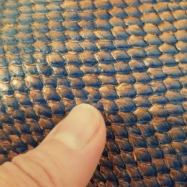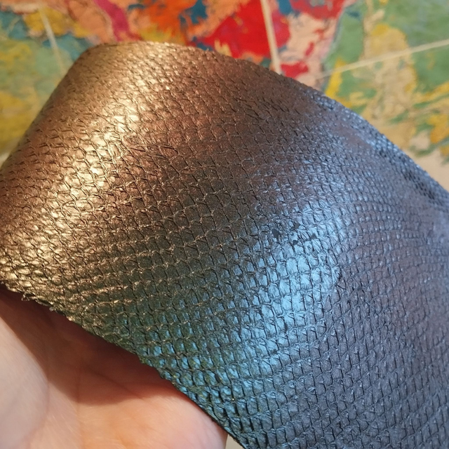 Chaque boucle est absolument unique car l'insertion des écailles varie sur la peau d'un même poisson. Il faut donc être prêt à recevoir des boucles du même coloris, mais dont le dessin formé par les écailles peut différer. Si vous voulez choisir le dessin, envisagez une remise en main propre !