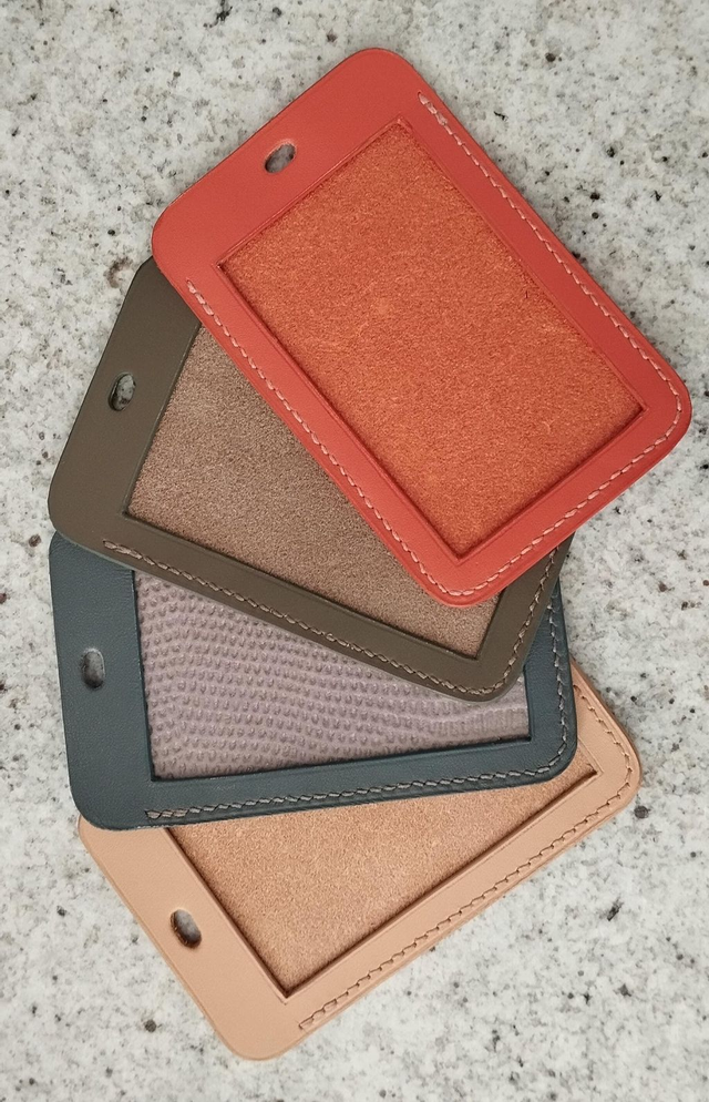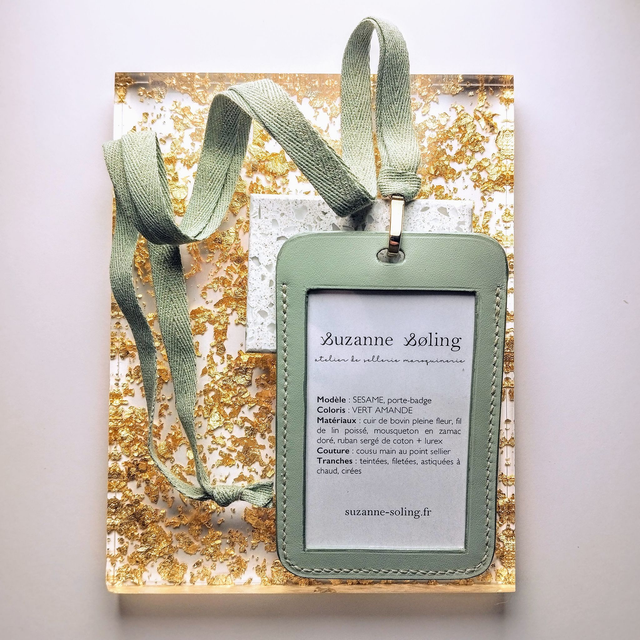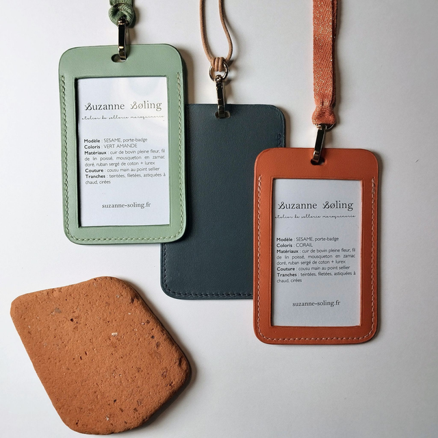 Personnalisation possible: choix du (ou des!) cuirs, du ruban/cordon, de la couleur du fil, possibilité de décliner le produit à l'horizontale pour les badges au format "paysage".... Contactez-moi via le formulaire pour exprimer vos besoins!